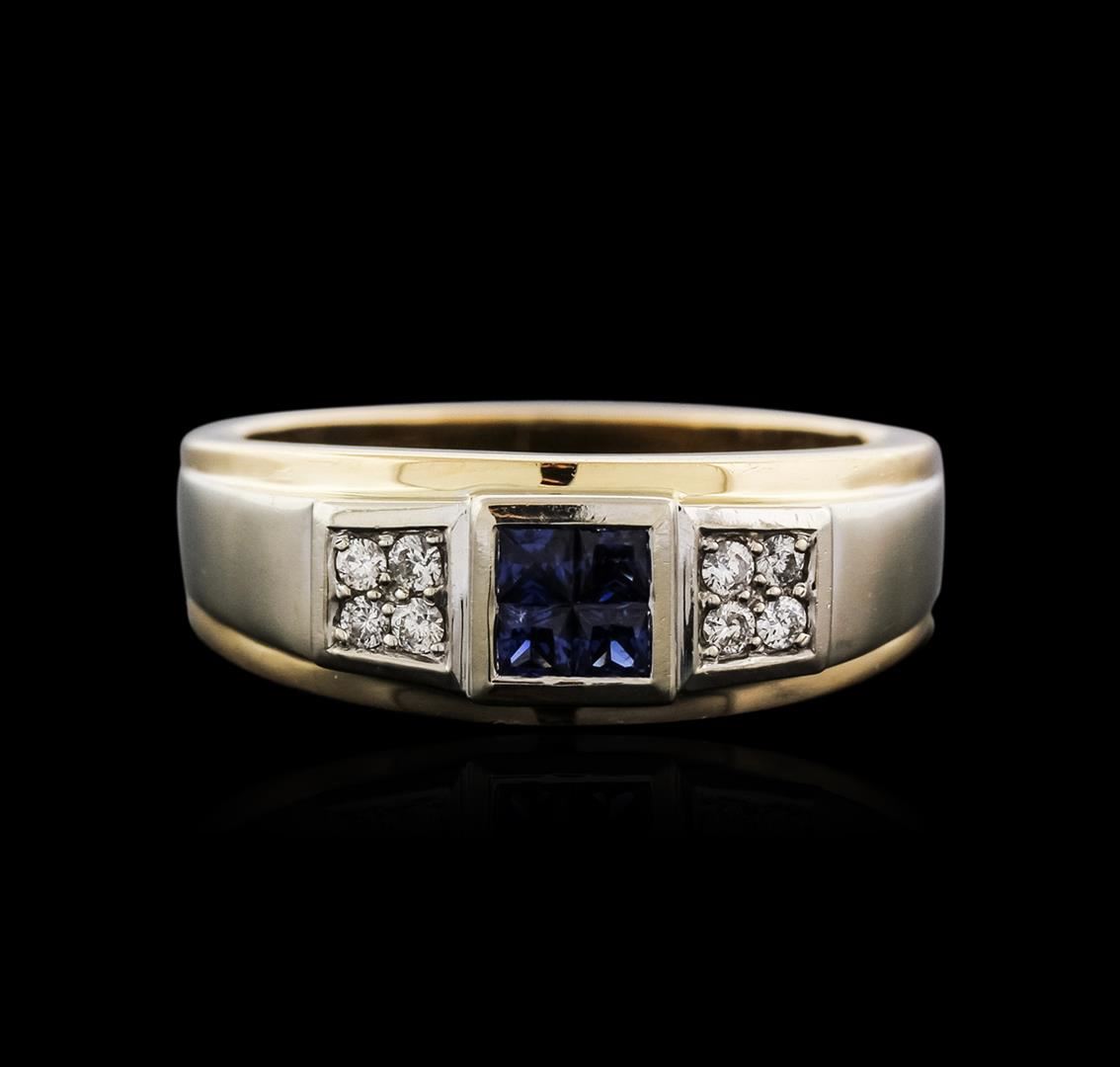 One ring featuring: 14KT white and yellow gold weighing 9.10 grams containing blue sapphires with a total weight of 0.40ct and diamonds with a total weight of 0.40ct.