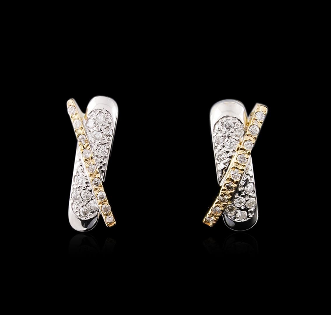 One pair of earrings featuring: 14KT white and yellow gold weighing 3.20 grams containing diamonds with a total weight of 0.50ct.
