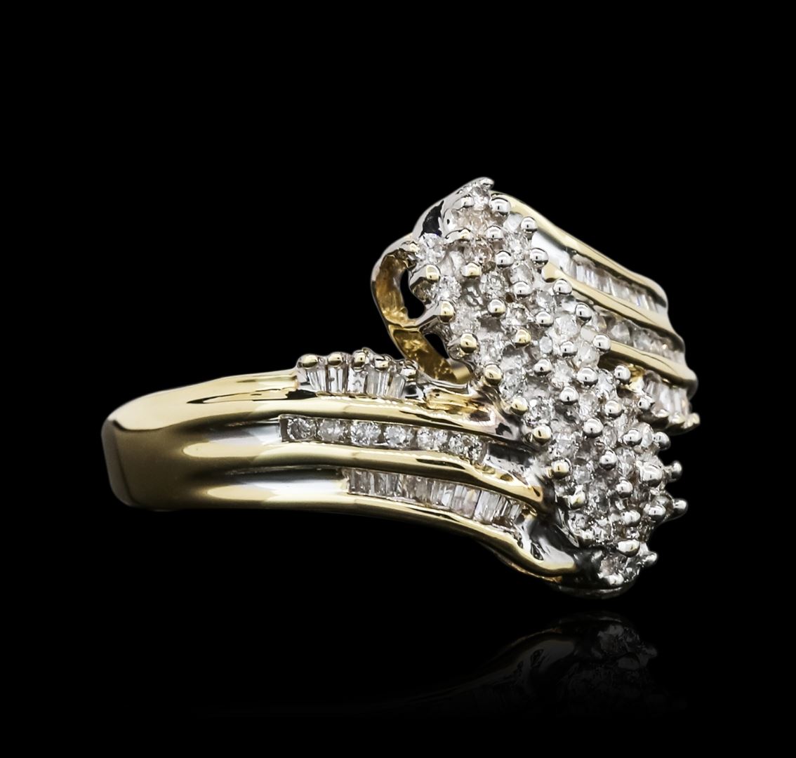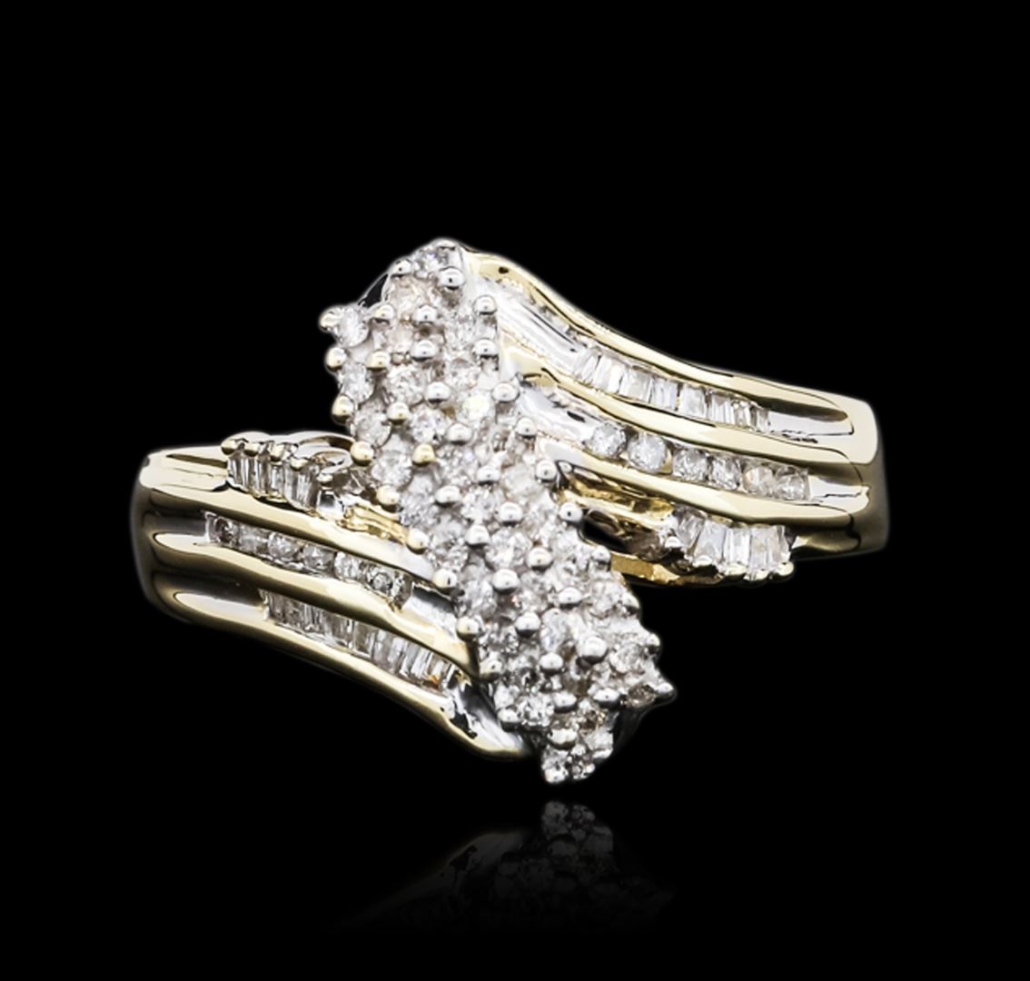 One ring featuring: 14KT yellow and white gold weighing 5.70 grams containing baguette cut/round diamonds with a total weight of 0.50cts.