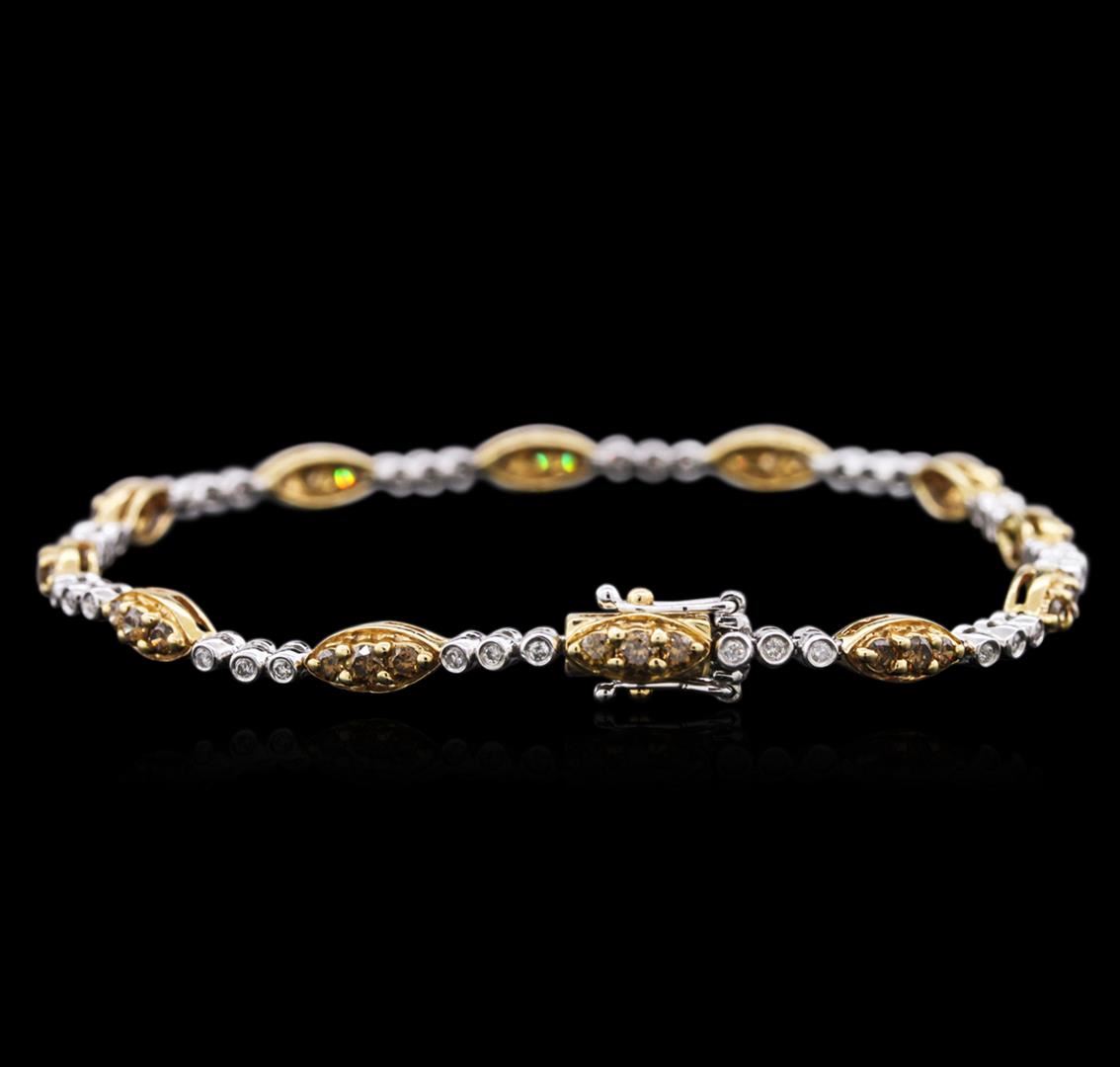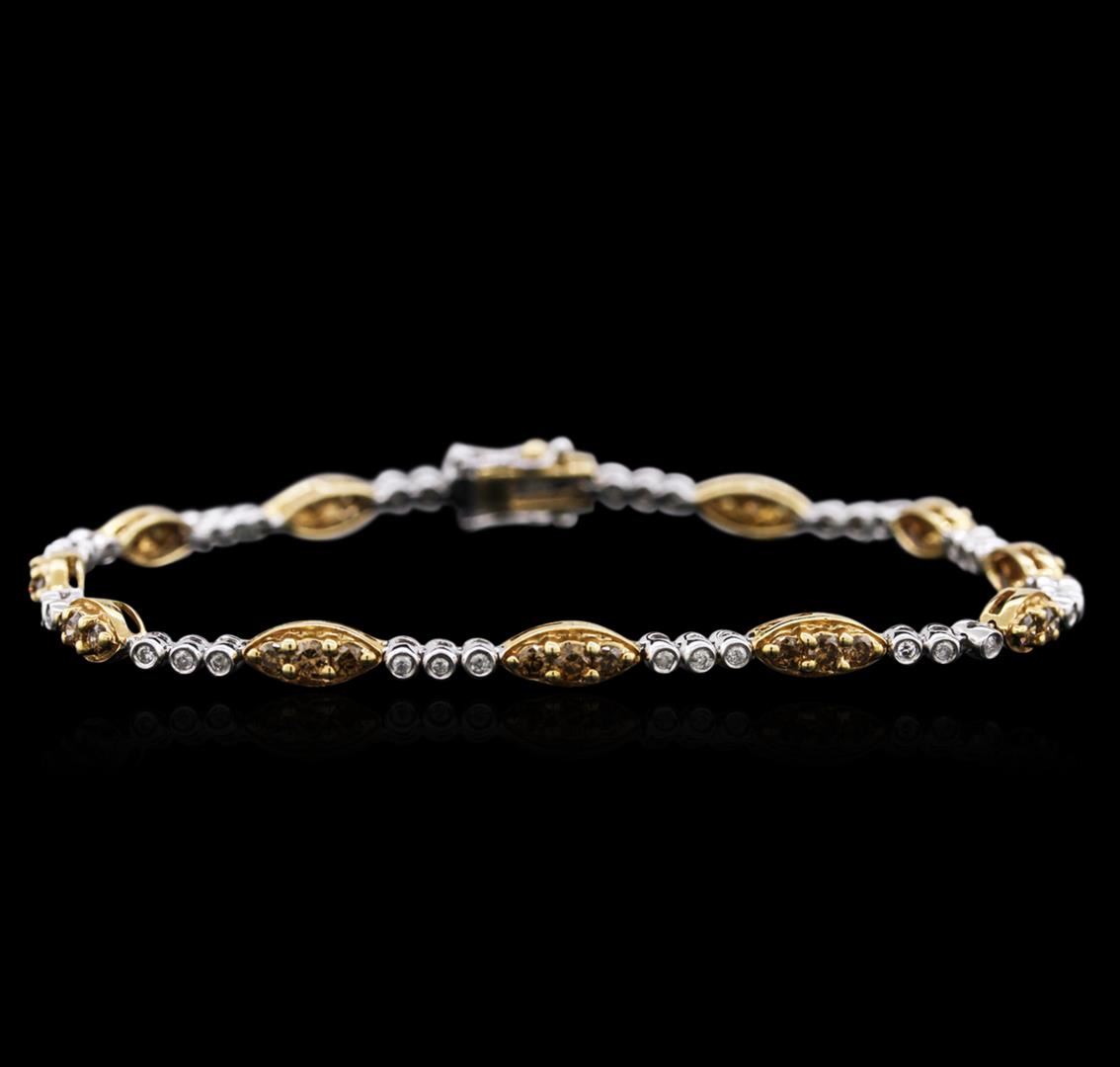 One bracelet featuring: 14KT white and yellow gold weighing 8.57 grams containing 36 brown diamonds with a total weight of 1.29ct and 36 round diamonds with a total weight of 0.27ct.