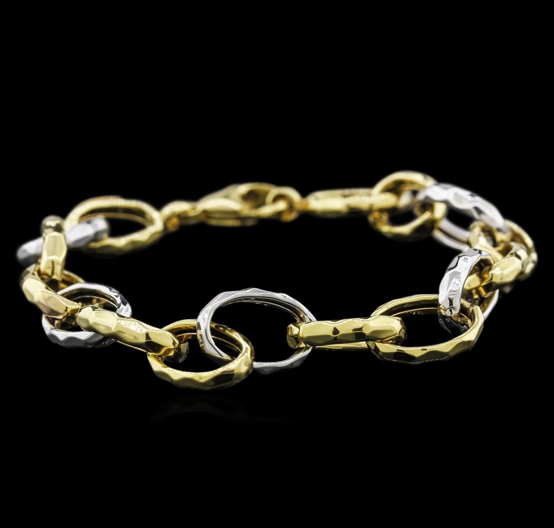 One bracelet featuring: 14KT yellow and white gold weighing 8.30 grams.