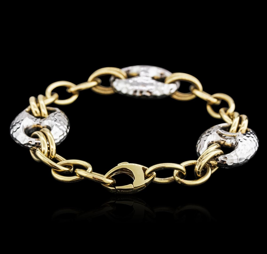 One fashion bracelet featuring: 14KT yellow and white gold weighing 18.50 grams.