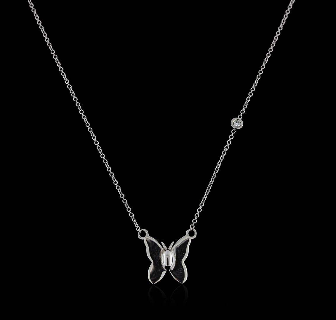 One butterfly necklace featuring: 14KT white gold weighing 2.16 grams containing one diamond with a total weight of 0.03ct.