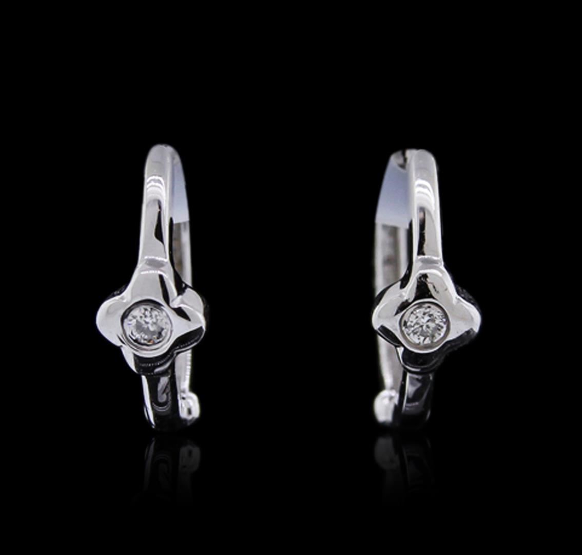 One pair of earrings featuring: 14KT white gold weighing 1.35 grams containing diamonds with a total weight of 0.03ct.