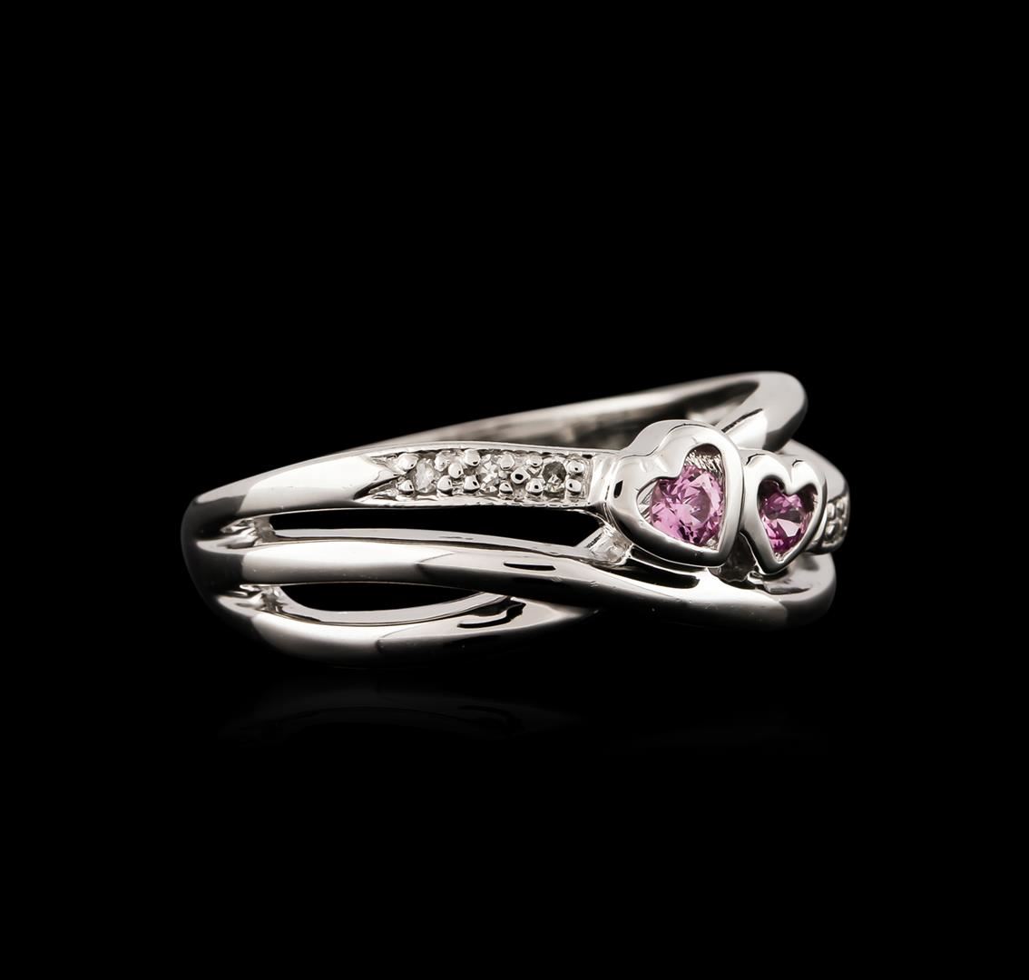 One ring featuring: 14KT white gold weighing 3.30 grams containing two pink topaz with a total weight of 0.05ct and diamonds with a total weight of 0.05ct.