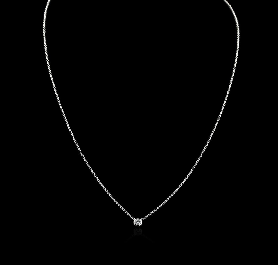 One solitaire necklace featuring: 14KT white gold weighing 1.65 grams containing one diamond with a total weight of 0.09ct.
