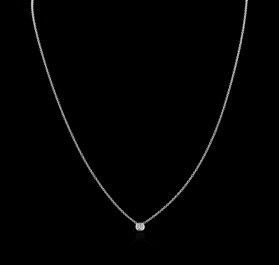 One solitaire necklace featuring: 14KT white gold weighing 1.68 grams containing one diamond with a total weight of 0.09ct.