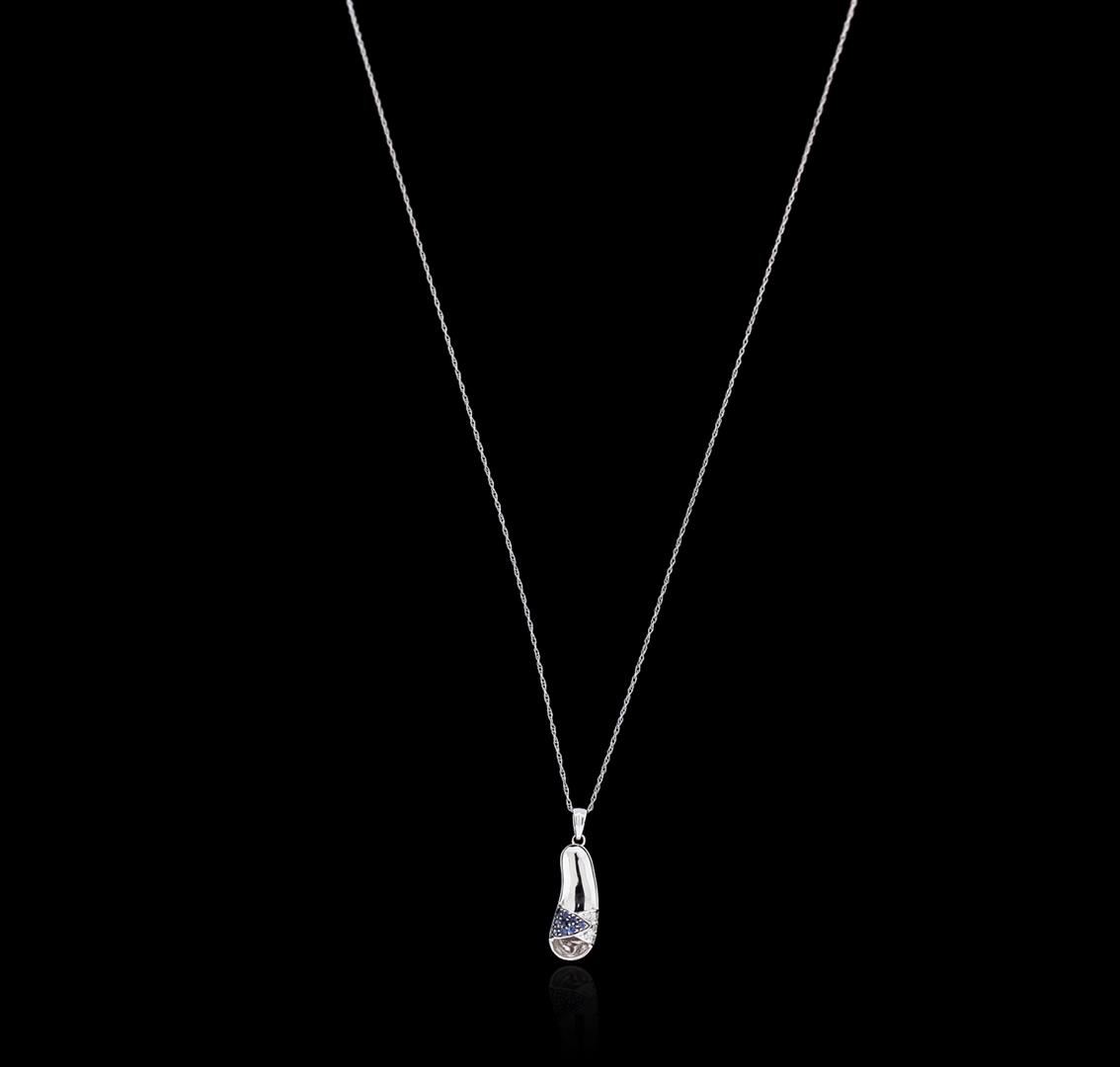 One sandal pendant with chain featuring: 14KT white gold weighing 3.10 grams containing blue sapphires with a total weight of 0.10ct and diamonds with a total weight of 0.05ct.