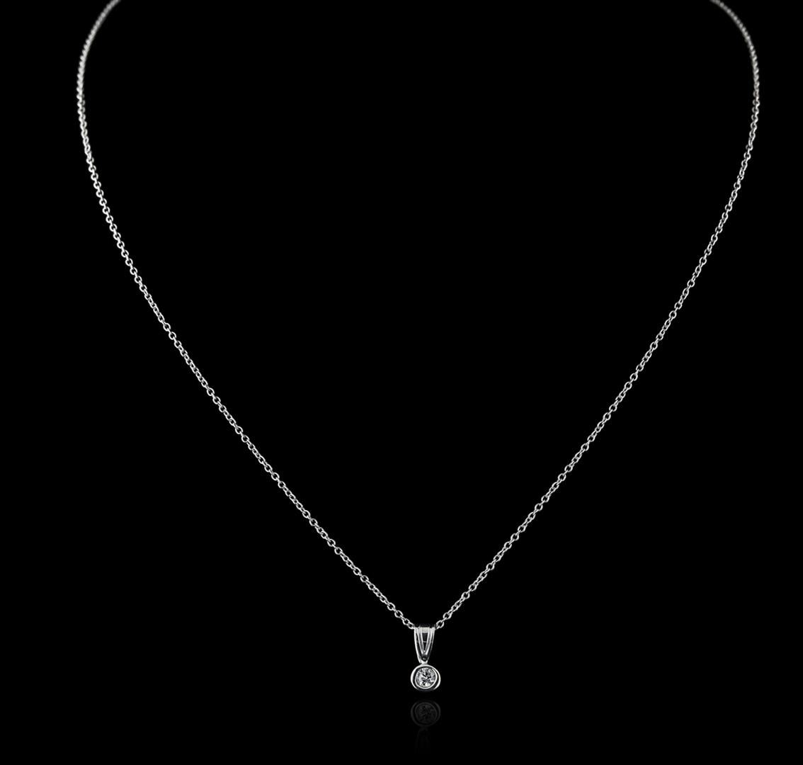 One solitaire pendant with chain featuring: 14KT white gold weighing 1.52 grams containing one diamond with a total weight of 0.10ct.