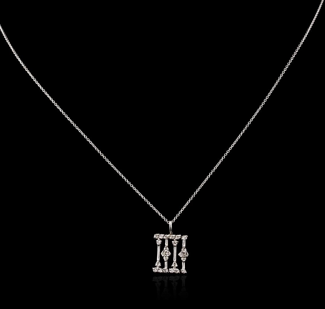 One pendant with chain featuring: 14KT white gold weighing 4.20 grams containing round diamonds weighing a total of 0.15ct.