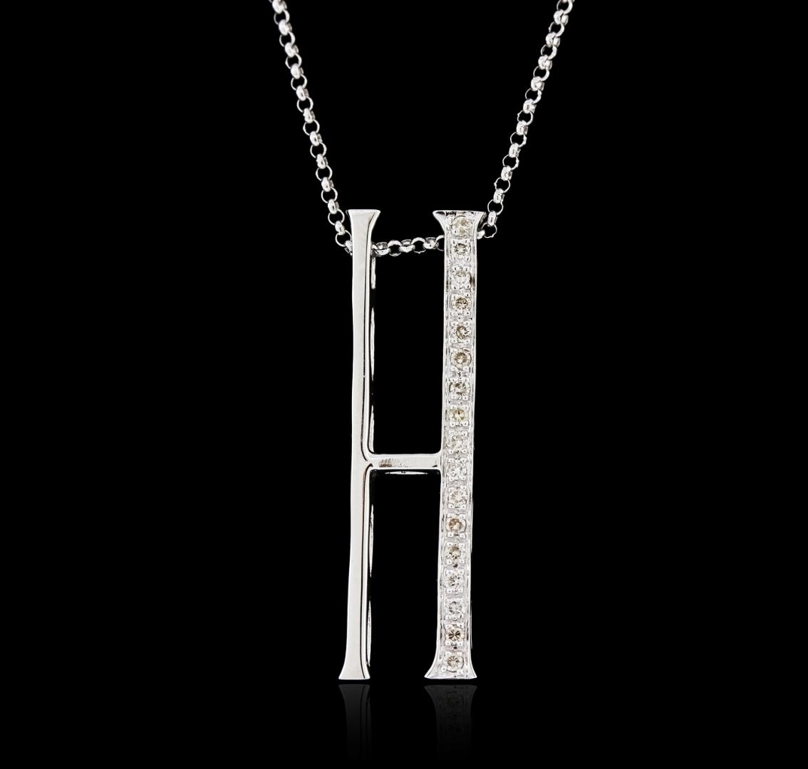 One pendant with chain resembling the letter H featuring: 14KT white gold weighing 4.30 grams containing diamonds with a total weight of 0.16ct.