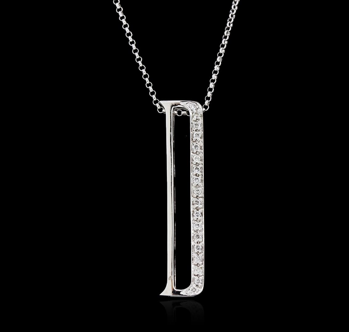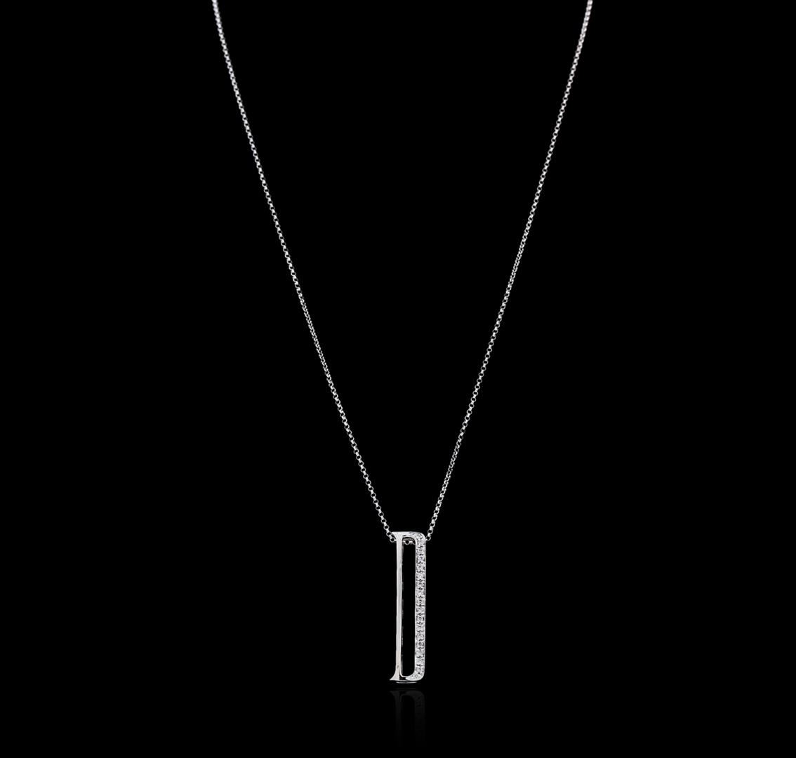One pendant with chain resembling the letter D featuring: 14KT white gold weighing 4.30 grams containing diamonds with a total weight of 0.16ct.
