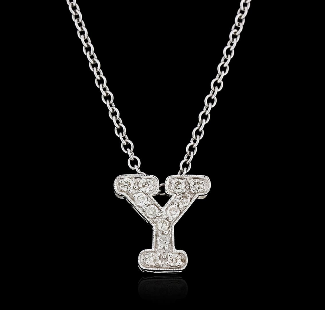 One pendant with chain resembling the letter Y featuring: 14KT white gold weighing 3.40 grams containing diamonds with a total weight of 0.17ct.