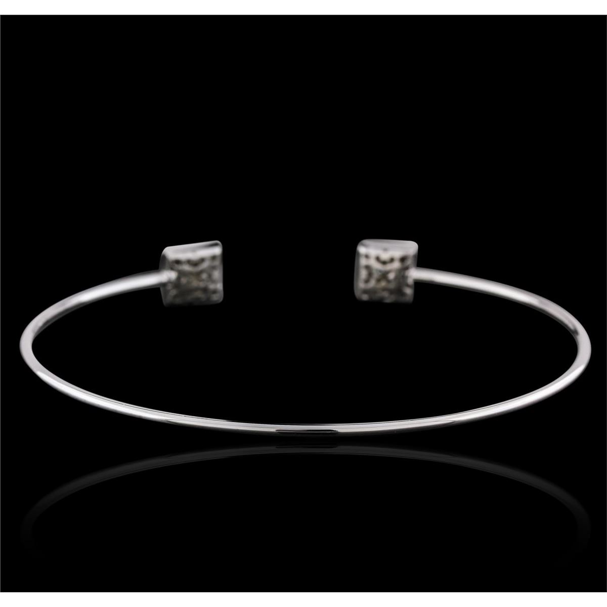One electronically tested 14KT white gold ladies cast diamond bangle bracelet with a bright polish finish. Condition is new. Containing: Forty-Eight bead set round brilliant cut diamonds, measuring 1.00 - 1.00 x 0.60mm (depth est.) approximate total weight of 48 Stones = 0.17ct. Clarity: I-1 to I-3. Color: H - I, Cut is Good. All diamonds are graded in the mounting, unless otherwise stated. Total Weight of Diamonds 0.17ct. Total Weight of Bangle Bracelet 5.30 grams. GGL Appraised at $3,155.00.