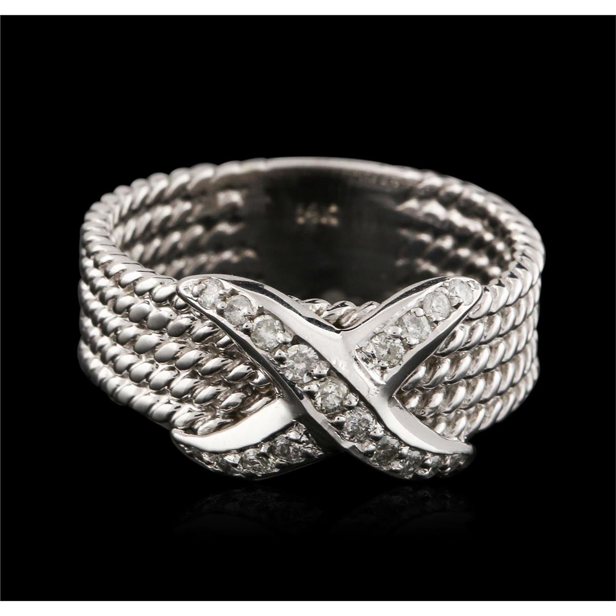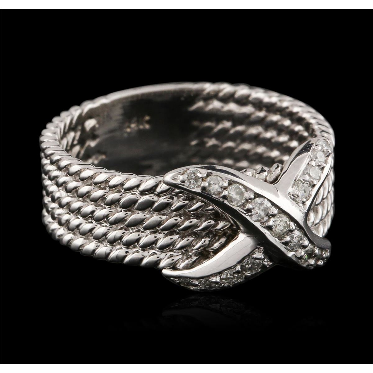 One ring featuring: 14KT white gold weighing 5.20 grams containing pave set round diamonds with a total weight of 0.18ct.
