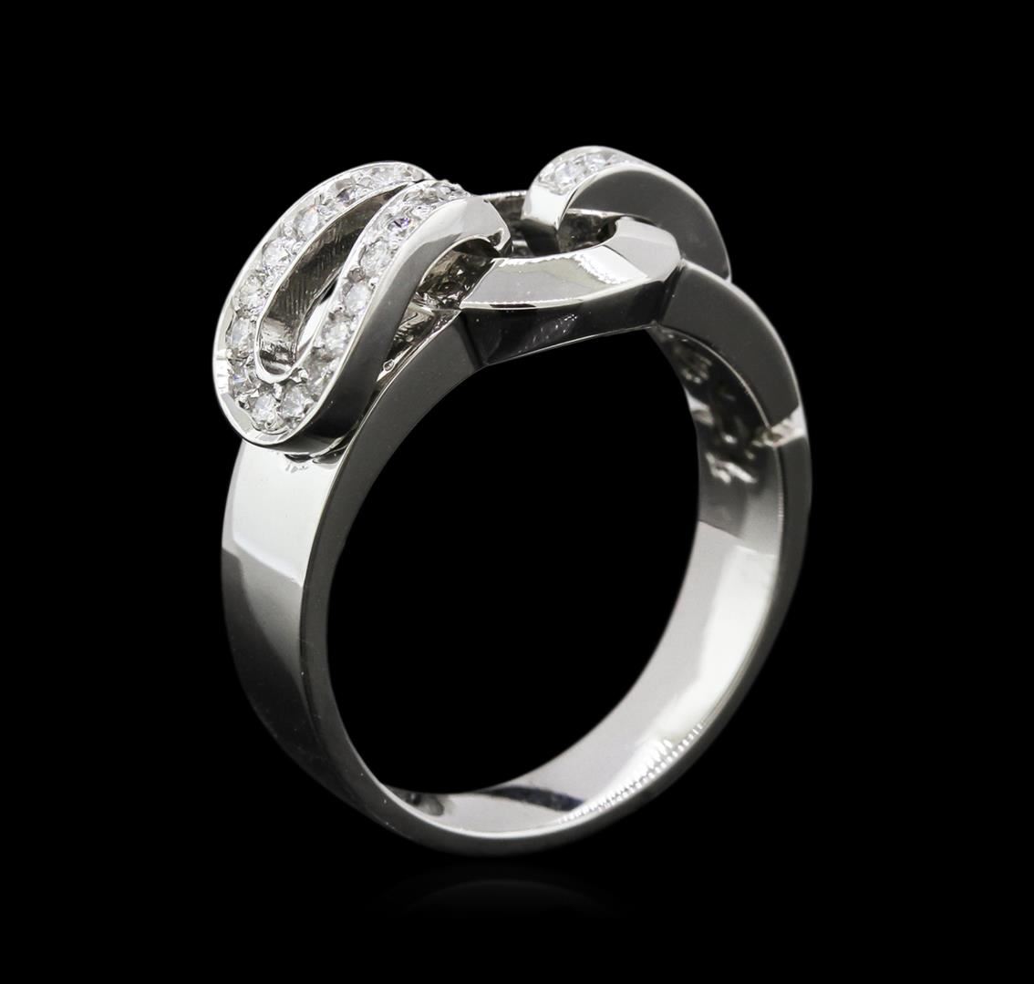 One electronically tested 14KT white gold ladies cast diamond ring with a bright polish finish. Identified with markings of "14K". Condition is new. Containing: Twenty-Five prong set round brilliant cut diamonds, measuring 1.30 - 1.30 x 0.78mm (depth est.) approximate total weight of 25 Stones = 0.20ct. Clarity: SI-1 to SI-2. Color: I - J, Cut is Good. All diamonds are graded in the mounting, unless otherwise stated. Total Weight of Diamonds 0.20ct. Total Weight of Ring 5.70 grams. GGL Appraised at $2,455.00.