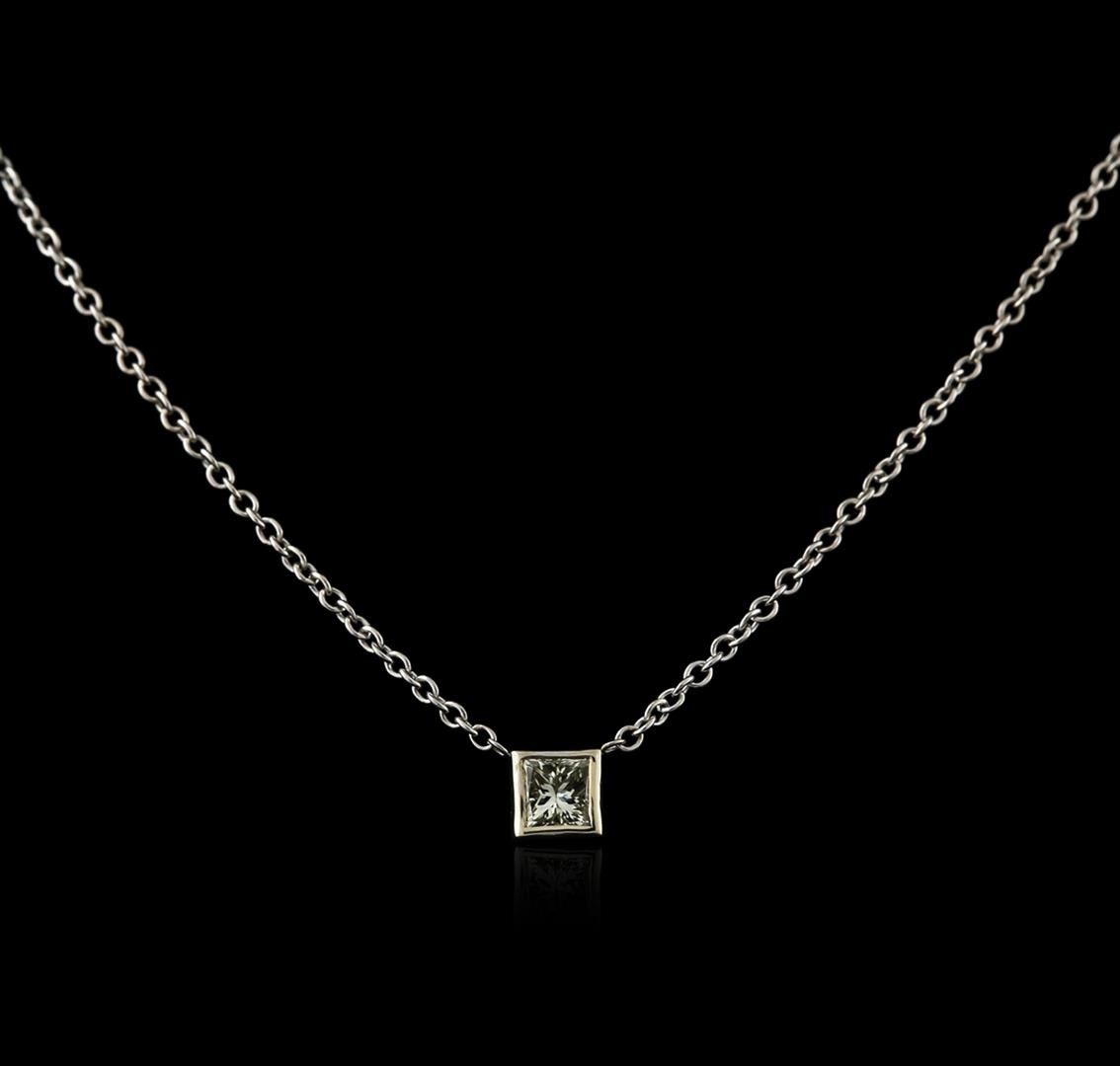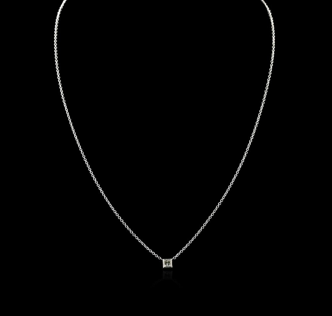 One solitaire necklace featuring: 14KT white gold weighing 2.00 grams containing one diamond with a total weight of 0.20ct.