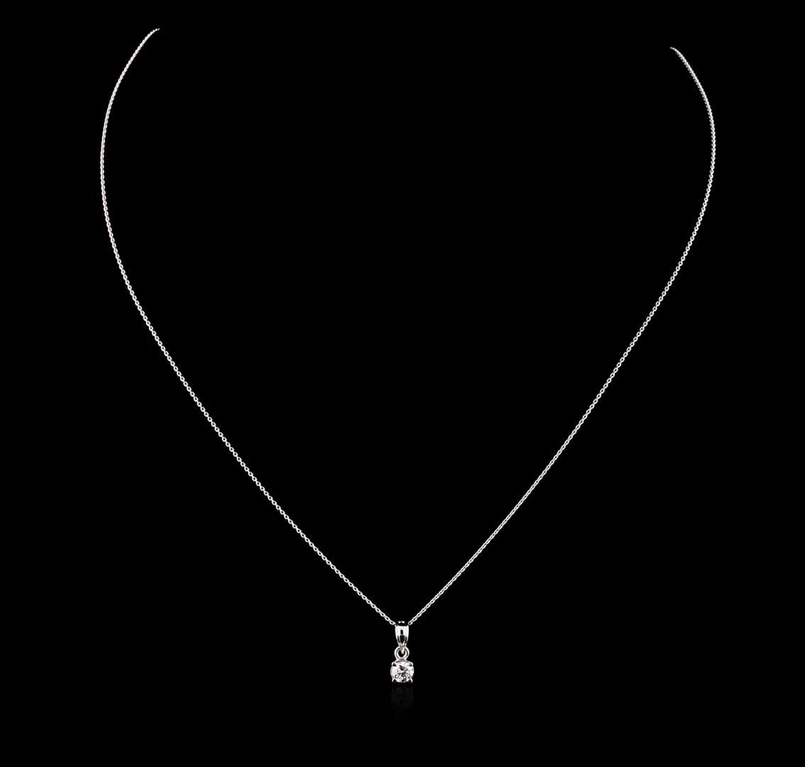 One solitaire pendant with chain featuring: 14KT white gold weighing 1.00 grams containing one diamond center stone with a total weight of 0.20ct.
