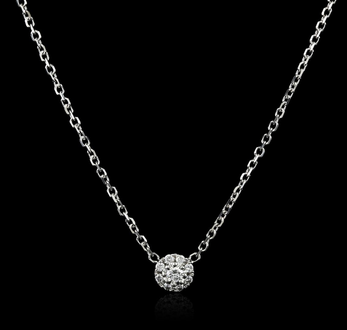 One necklace featuring: 14KT white gold weighing 3.10 grams containing one center diamond with a total weight of 0.06ct and diamonds with a total weight of 0.14ct.