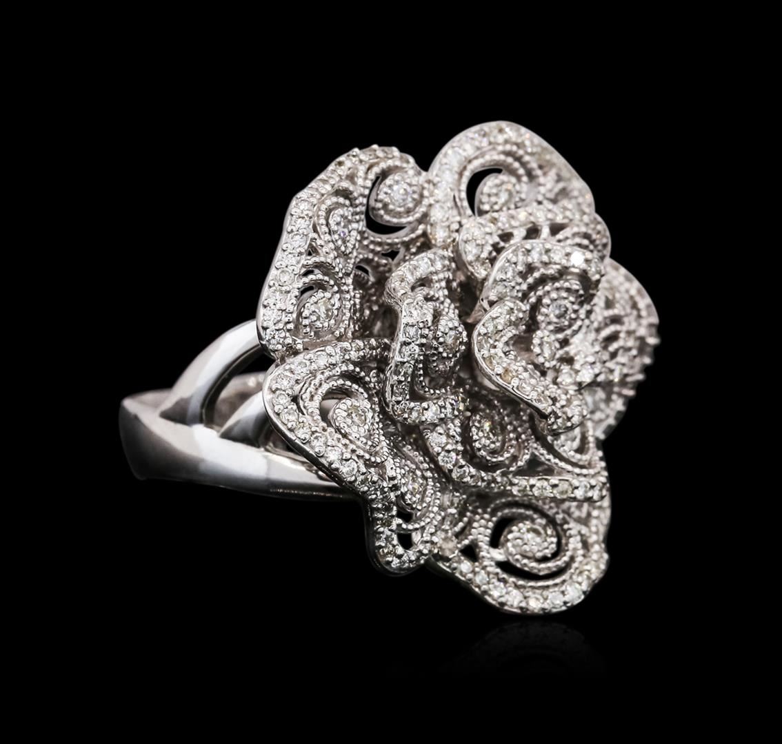 One electronically tested 14KT white gold ladies combination cast & assembled diamond ring with a bright polish finish. Identified with markings of "585". Condition is new. Containing: Forty-Six prong set round brilliant cut diamonds, measuring 1.10 - 1.10 x 0.66mm (depth est.) approximate total weight of 46 Stones = 0.22ct. Clarity: I-1 to I-2. Color: I - J. All diamonds are graded in the mounting, unless otherwise stated. Total Weight of Diamonds 0.22ct. Total Weight of Ring 11.00 grams. GGL Appraised at $3,150.00.