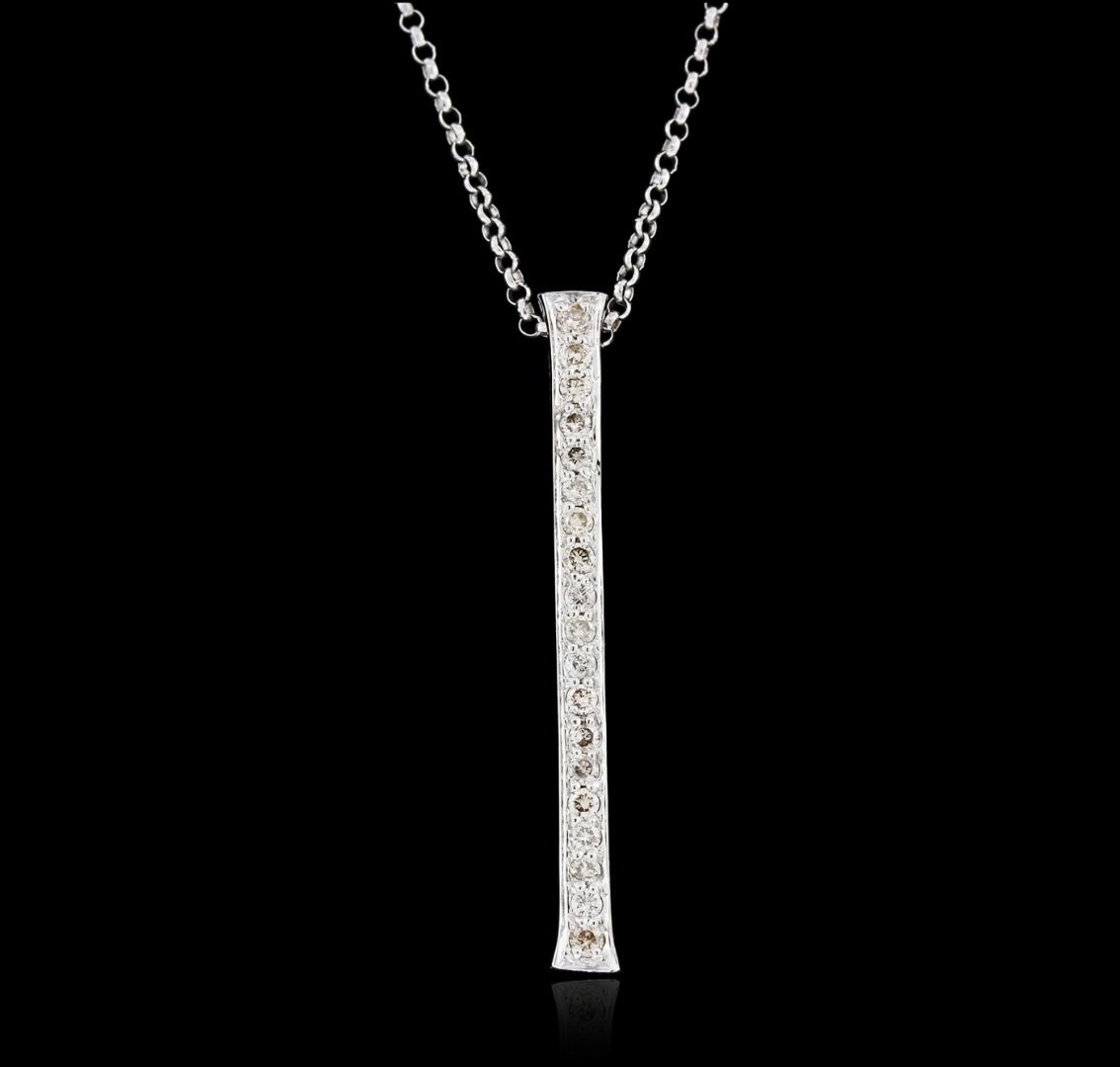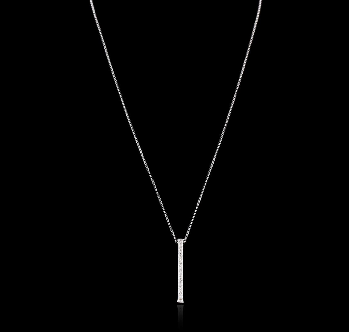 One pendant with chain resembling the letter I featuring: 14KT white gold weighing 2.60 grams containing diamonds with a total weight of 0.23ct.