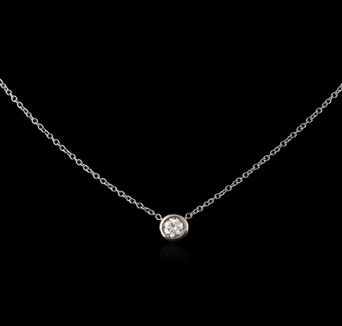 One necklace featuring: 14KT white gold weighing 2.00 grams containing one bezel set round diamond with a total weight of 0.24ct.