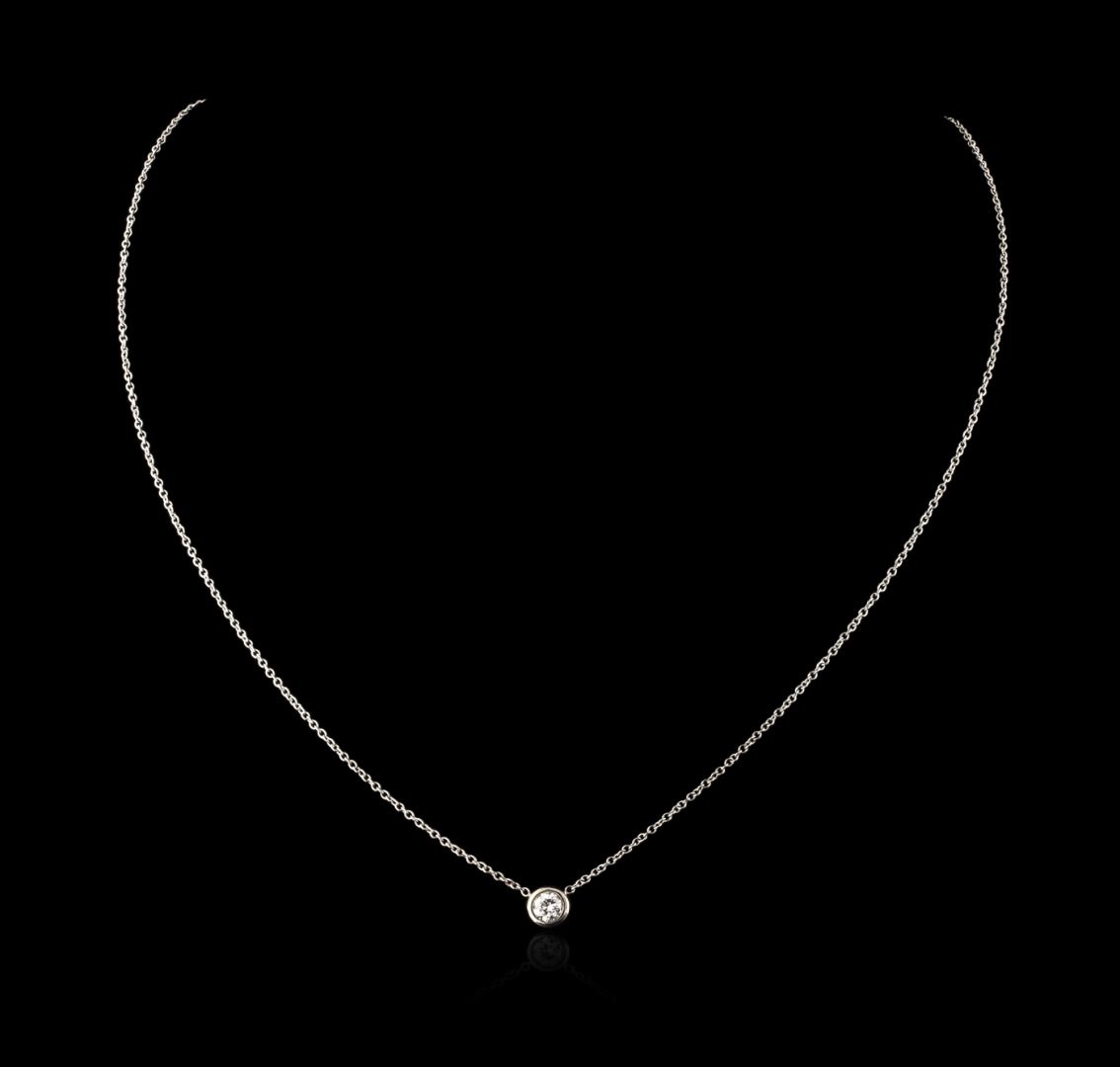 One necklace featuring: 14KT white gold weighing 2.00 grams containing one bezel set round diamond with a total weight of 0.24ct.
