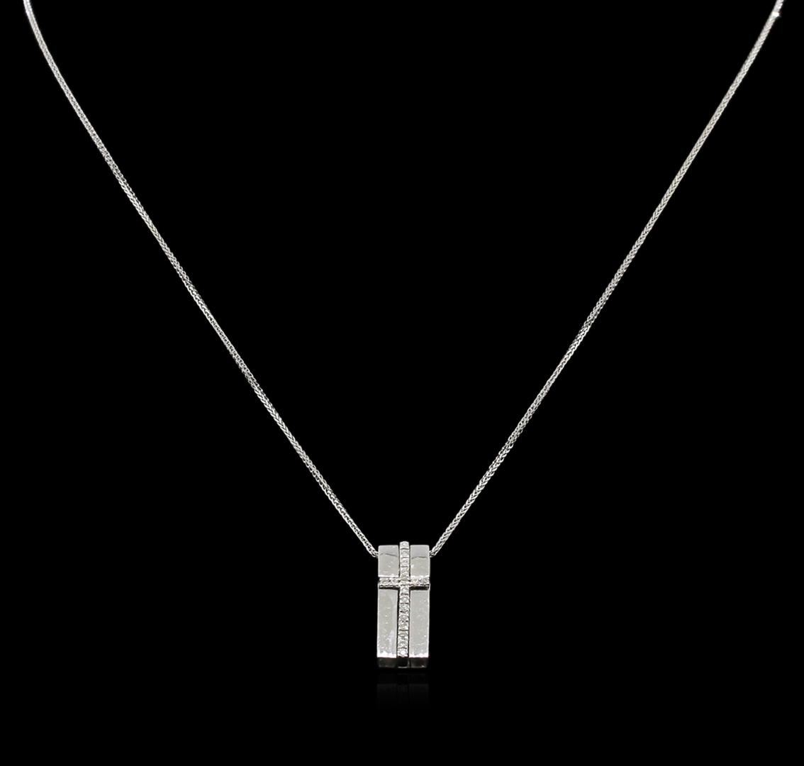 One pendant with chain featuring: 14KT white gold weighing 4.90 grams containing round diamonds with a total weight of 0.25ct.