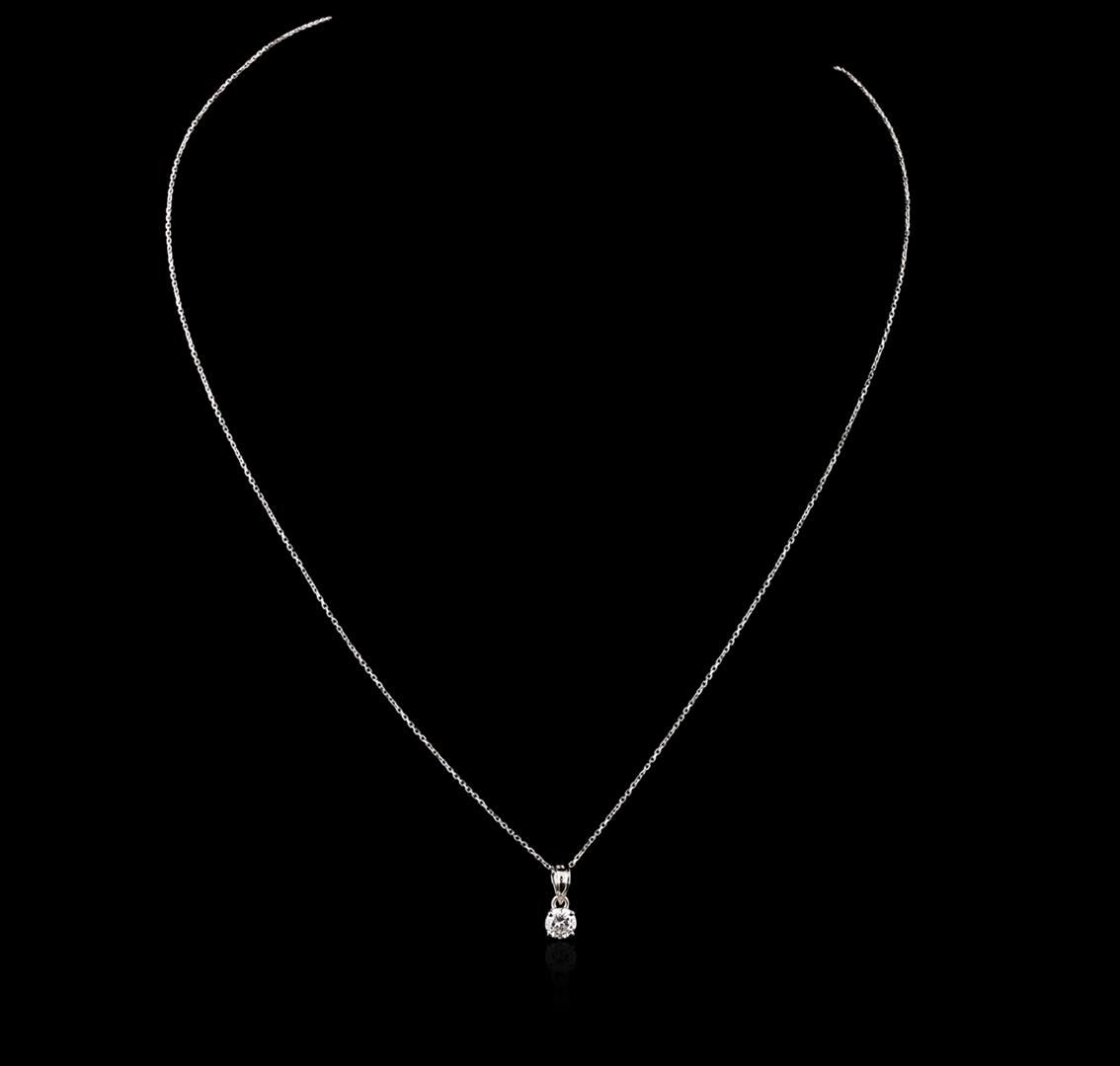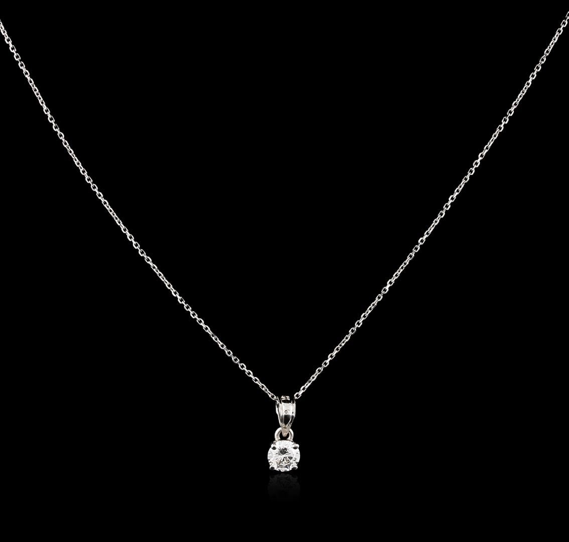One solitaire pendant with chain featuring: 14KT white gold weighing 1.00 grams containing one diamond center stone with a total weight of 0.25ct.