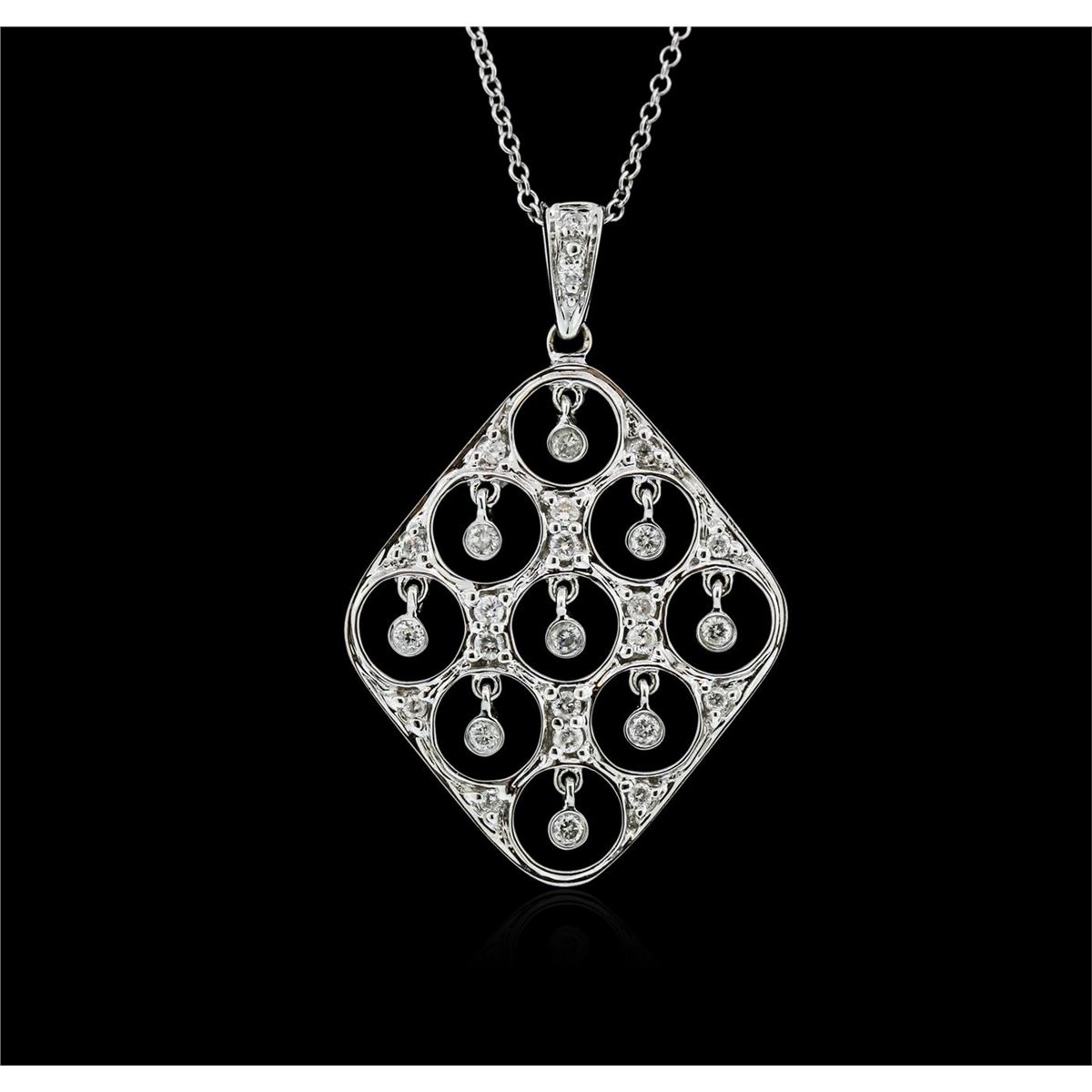 One pendant with chain featuring: 14KT white gold weighing 3.90 grams containing pave and bezel set round diamonds with a total weight of 0.25ct.