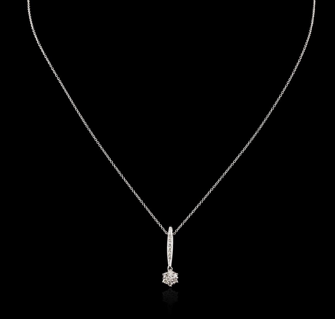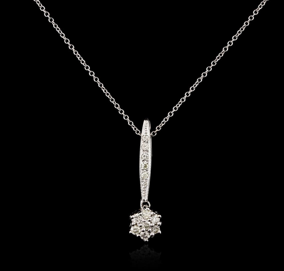 One pendant with chain featuring: 14KT white gold weighing 2.97 grams containing diamonds with a total weight of 0.25ct.