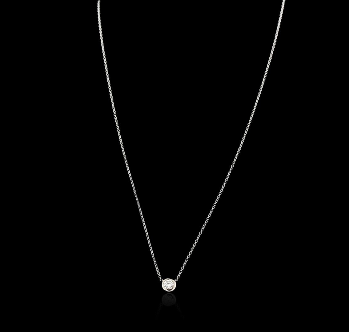 One solitaire necklace featuring: 14KT white gold weighing 2.10 grams containing one bezel set round diamond with a total weight of 0.26ct.