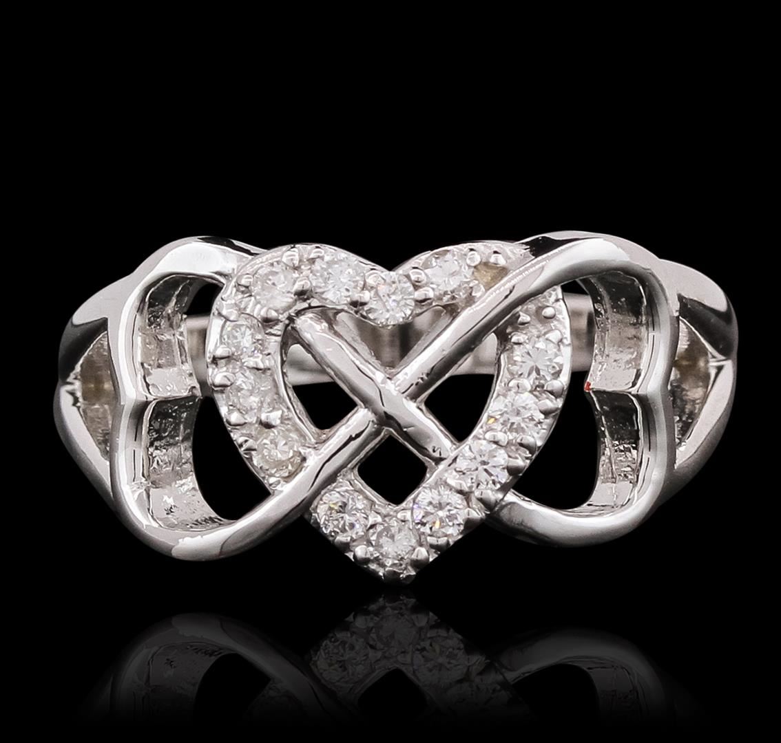 One ring featuring: 14KT white gold weighing 5.06 grams containing round cut diamonds with a total weight of 0.27cts set within a heart.