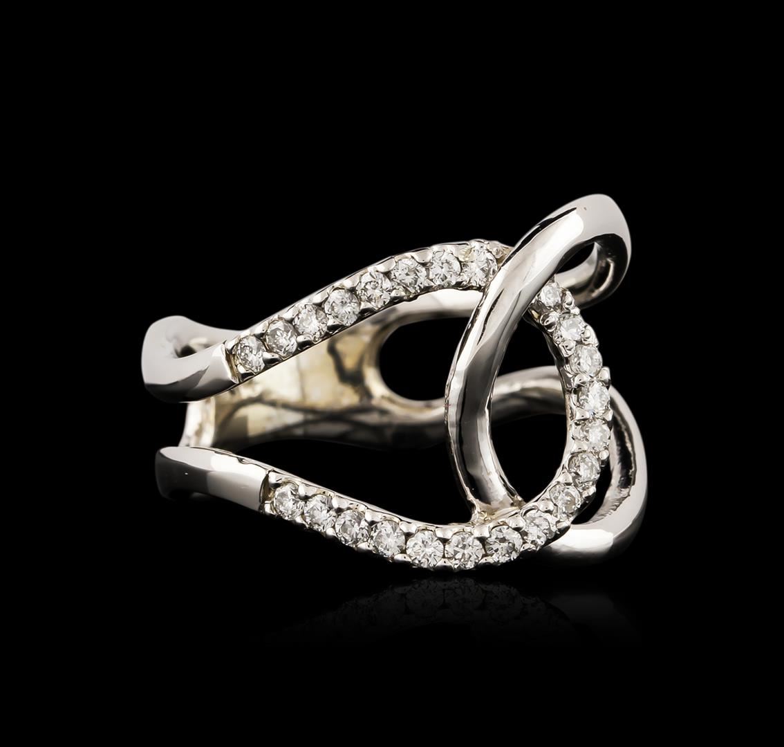One electronically tested 14KT white gold ladies cast diamond ring with a bright polish finish. Identified with markings of "14K". Condition is new. Containing: Twenty-Three prong set round brilliant cut diamonds, measuring 1.50 - 1.50 x 0.90mm (depth est.) approximate total weight of 23 Stones = 0.28ct. Clarity of SI-1 to I-1, Color of I - J, Cut is Good. All diamonds are graded in the mounting, unless otherwise stated. Total Weight of Diamonds 0.28ct. Total Weight of Ring 4.60 grams. GGL Appraised at $2,085.00.