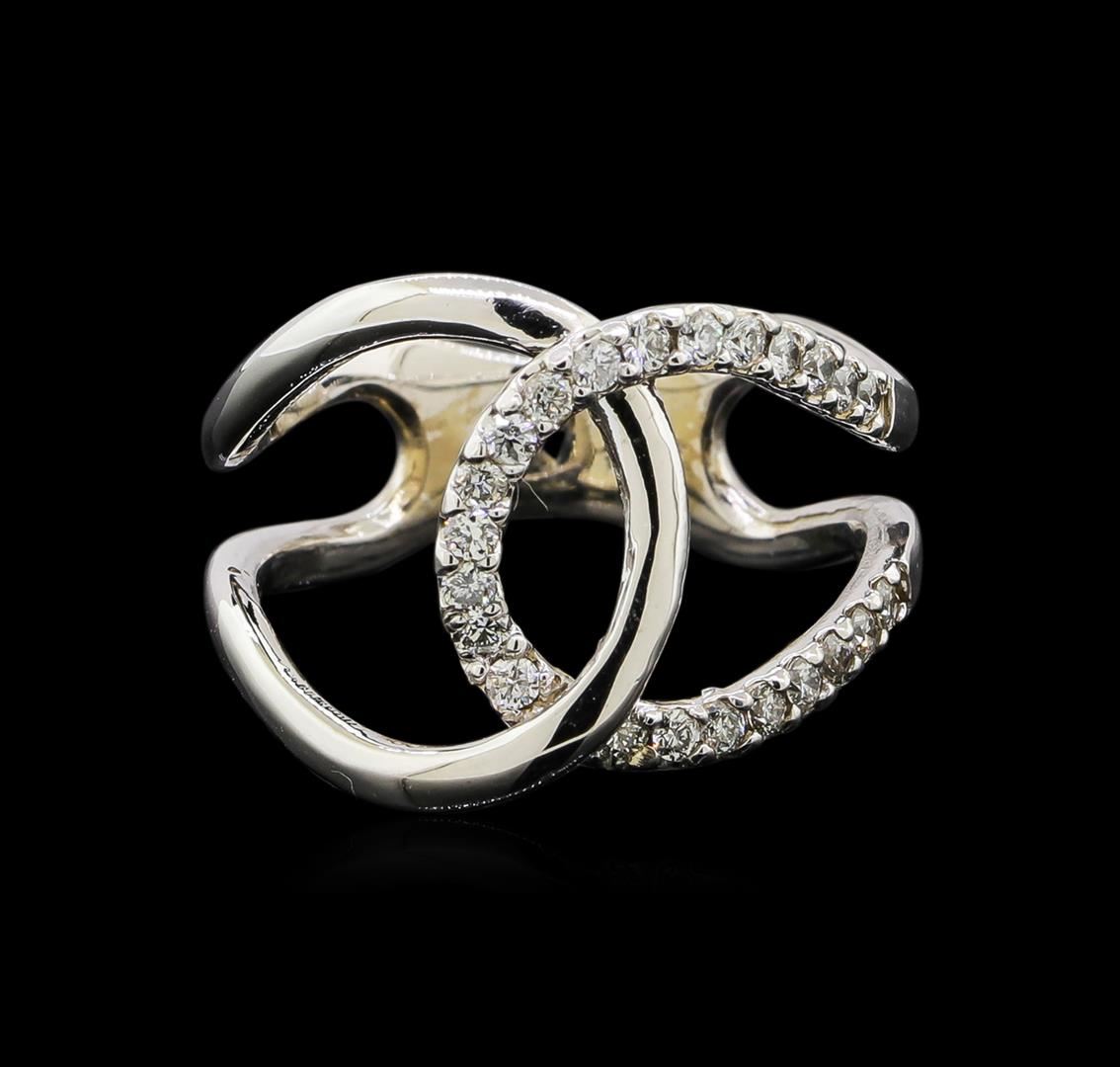 One electronically tested 14KT white gold ladies cast diamond ring with a bright polish finish. Identified with markings of "14K". Condition is new. Containing: Twenty-Three prong set round brilliant cut diamonds, measuring 1.50 - 1.50 x 0.90mm (depth est.) approximate total weight of 23 Stones = 0.28ct. Clarity of SI-1 to I-1, Color of I - J, Cut is Good. All diamonds are graded in the mounting, unless otherwise stated. Total Weight of Diamonds 0.28ct. Total Weight of Ring 4.60 grams. GGL Appraised at $2,085.00.
