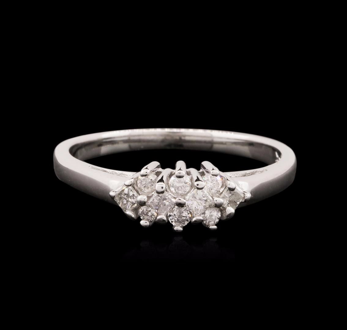 One ring featuring: 14KT white gold weighing 2.75 grams containing prong set round and princess cut diamonds with a total weight of 0.30ct.