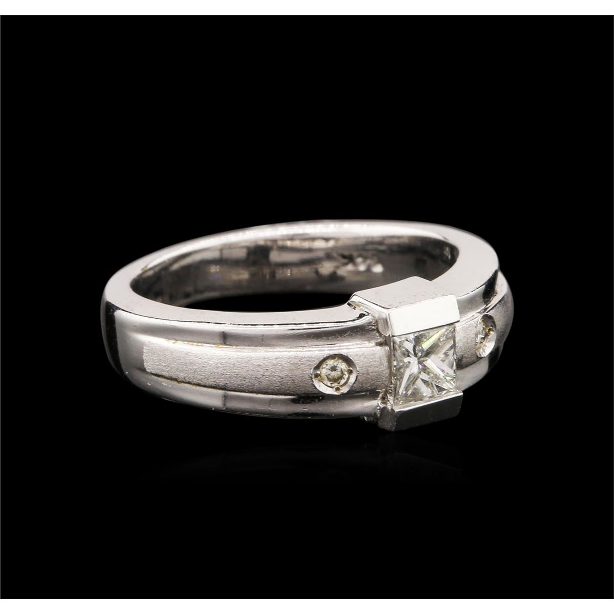 One ring featuring: 14KT white gold weighing 6.00 grams containing one bezel set princess cut diamond and two pave set round diamonds with a total weight of 0.31ct.
