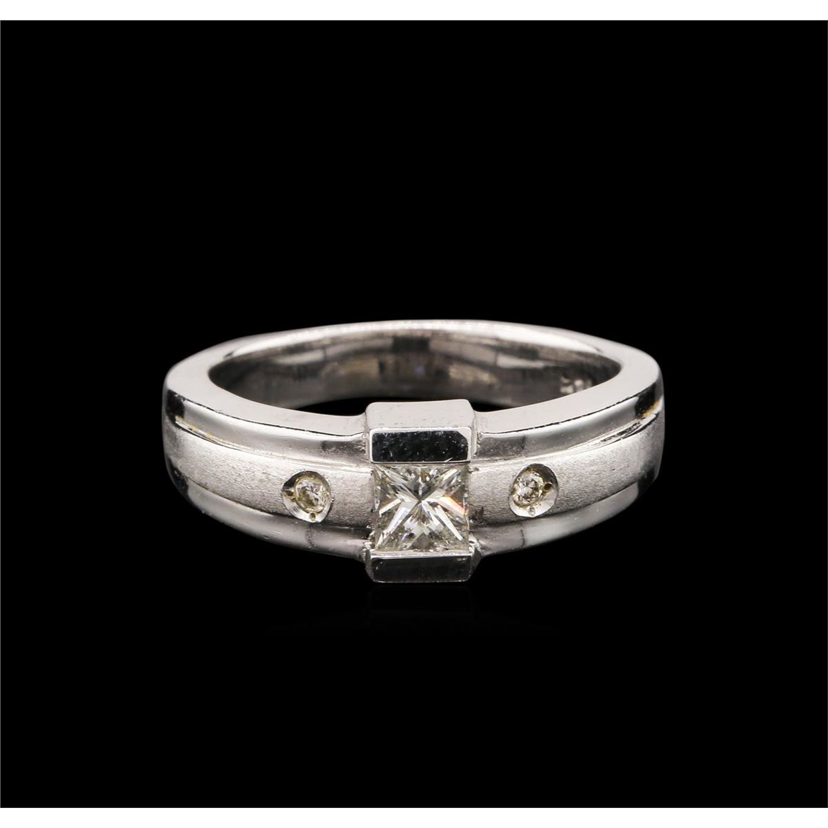 One ring featuring: 14KT white gold weighing 6.00 grams containing one bezel set princess cut diamond and two pave set round diamonds with a total weight of 0.31ct.