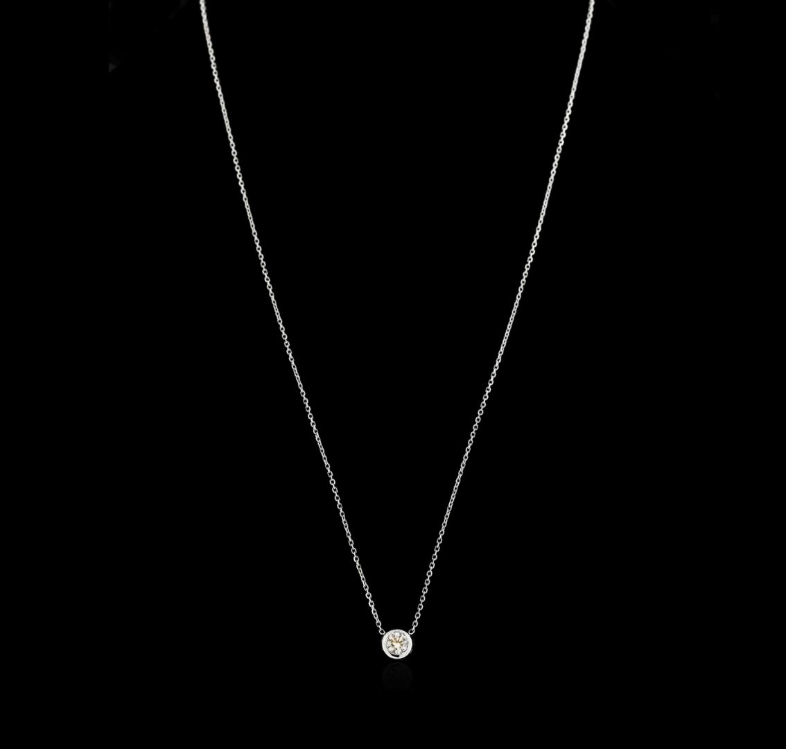 One solitaire necklace featuring: 14KT white gold weighing 1.90 grams containing one bezel set round diamond with a total weight of 0.32ct.