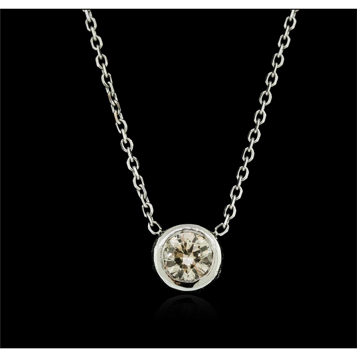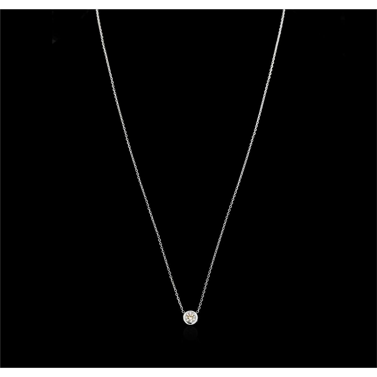 One solitaire necklace featuring: 14KT white gold weighing 1.90 grams containing one bezel set round diamond with a total weight of 0.32ct.