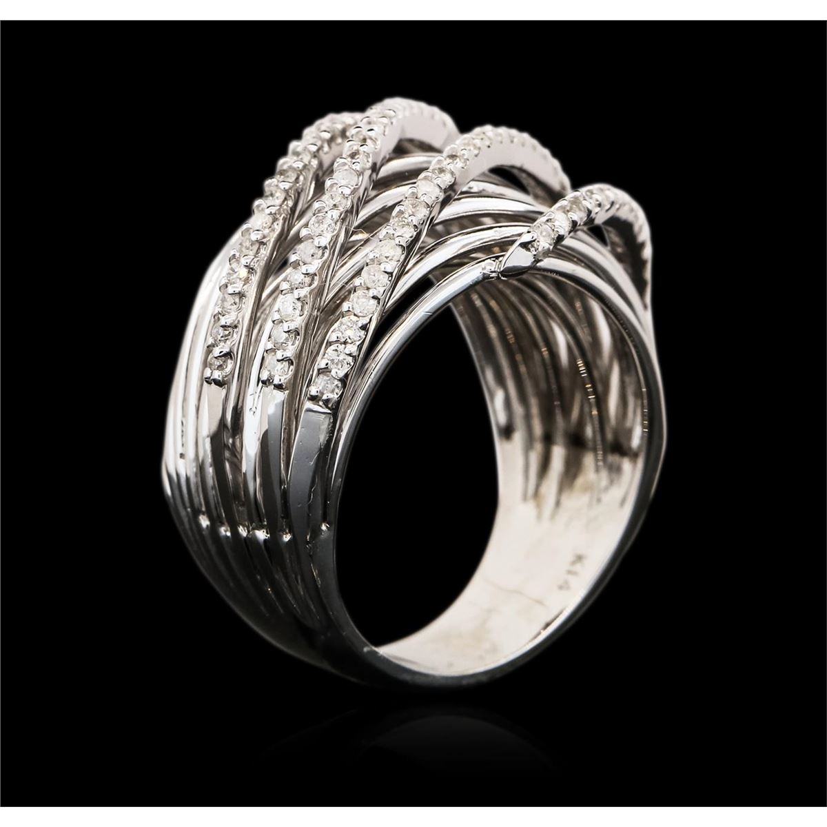 One electronically tested 14KT white gold ladies combination cast & assembled diamond ring with a bright polish finish. Identified with markings of "K14". Condition is new. Containing: Eighty-Eight prong set round brilliant cut diamonds, measuring 1.00 - 1.00 x 0.60mm (depth est.) approximate total weight of 88 Stones = 0.32ct. Clarity: I-1 to I-3. Color: I - J, Cut is Good. All diamonds are graded in the mounting, unless otherwise stated. Total Weight of Diamonds 0.32ct. Total Weight of Ring 10.60 grams. GGL Appraised at $3,960.00.