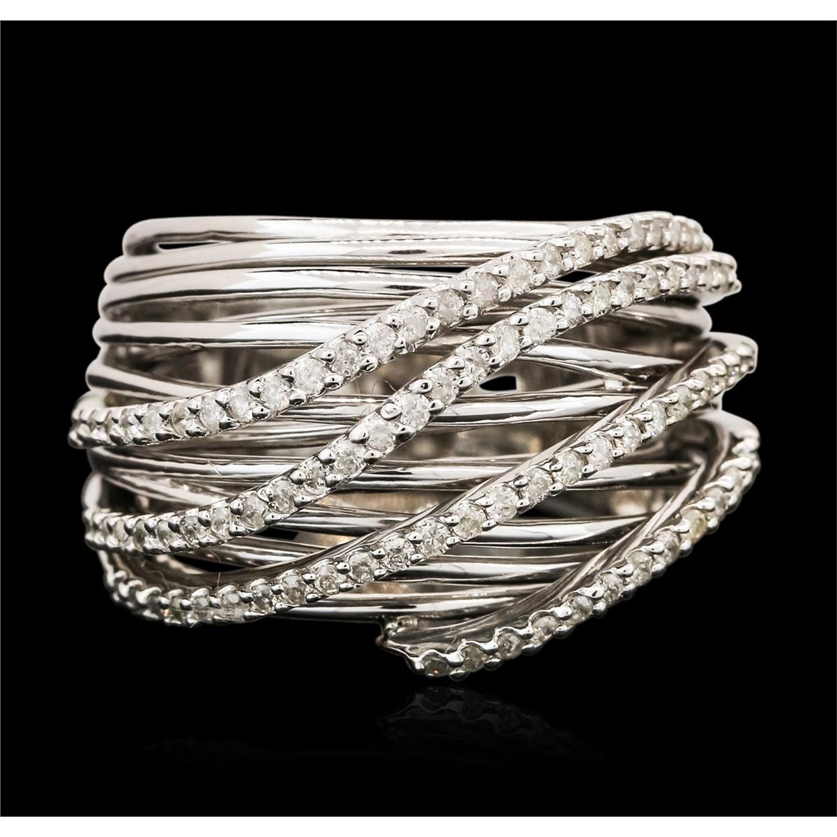 One electronically tested 14KT white gold ladies combination cast & assembled diamond ring with a bright polish finish. Identified with markings of "K14". Condition is new. Containing: Eighty-Eight prong set round brilliant cut diamonds, measuring 1.00 - 1.00 x 0.60mm (depth est.) approximate total weight of 88 Stones = 0.32ct. Clarity: I-1 to I-3. Color: I - J, Cut is Good. All diamonds are graded in the mounting, unless otherwise stated. Total Weight of Diamonds 0.32ct. Total Weight of Ring 10.60 grams. GGL Appraised at $3,960.00.