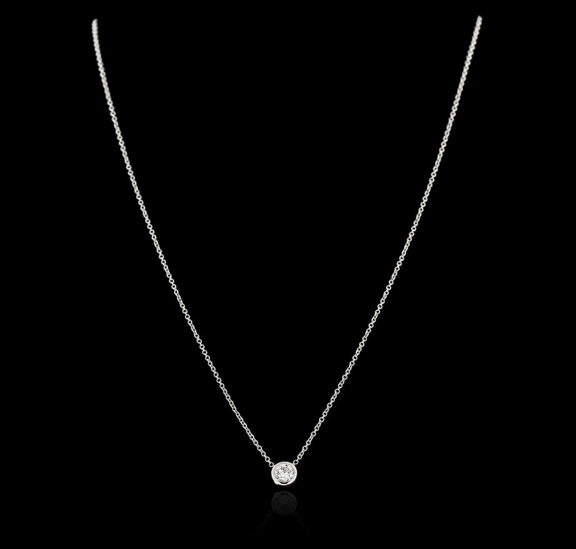 One solitaire necklace featuring: 14KT white gold weighing 2.10 grams containing one bezel set round diamond with a total weight of 0.33ct.