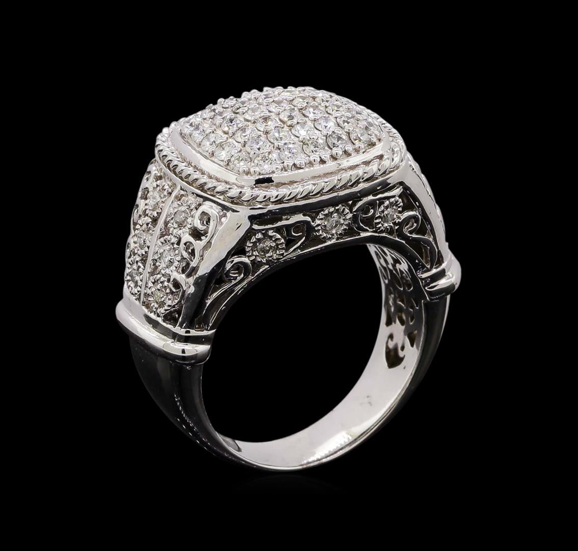 One electronically tested 14KT white gold ladies cast diamond ring with a bright polish finish. Identified with markings of "14K". Condition is new. Containing: Forty-One bead set round brilliant cut diamonds, measuring 1.50 - 1.10 x 0.78mm (depth est.) approximate total weight of 41 Stones = 0.33ct. Clarity: I-1 to I-2. Color: I - J. All diamonds are graded in the mounting, unless otherwise stated. Total Weight of Diamonds 0.33ct. Total Weight of Ring 12.70 grams. GGL Appraised.