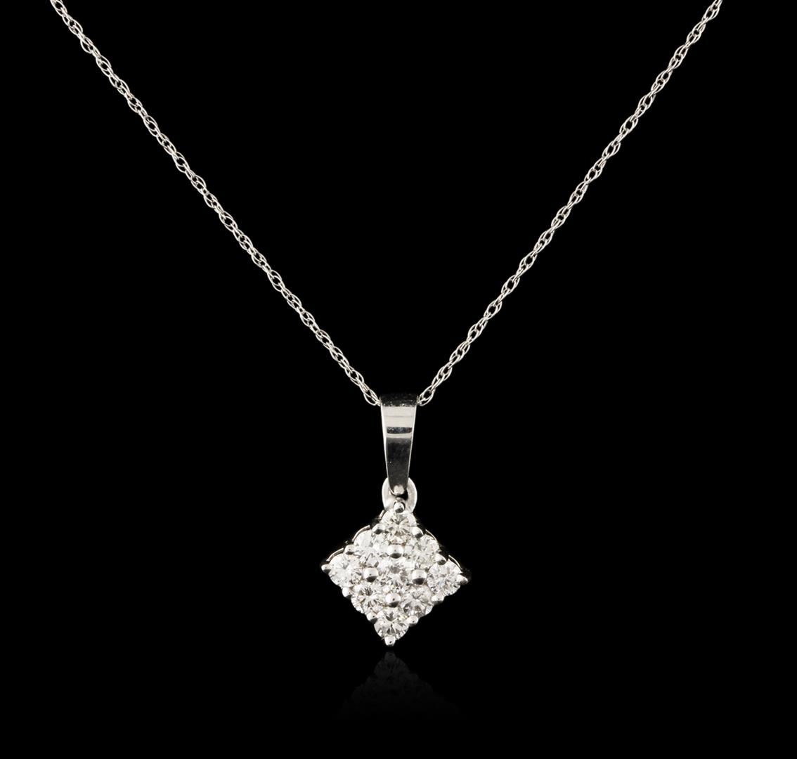 One pendant with chain featuring: 14KT white gold weighing 1.22 grams containing prong set round diamonds with a total weight of 0.35ct.