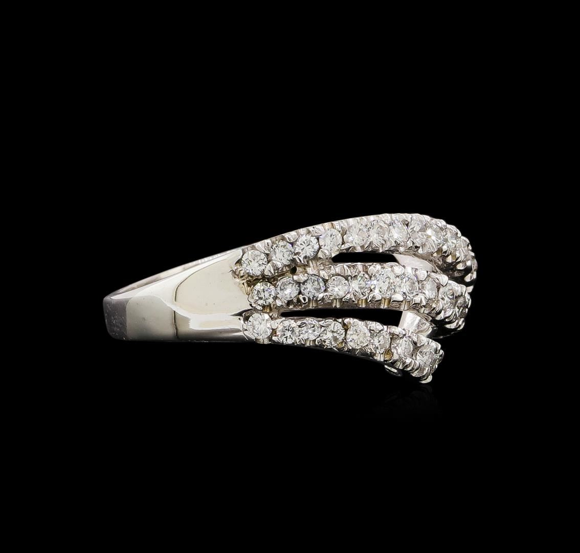 One electronically tested 14KT white gold ladies combination cast & assembled diamond ring with a bright polish finish. Identified with markings of "14K". Condition is new. Containing: Thirty-Five prong set round brilliant cut diamonds, measuring 1.50 - 1.30 x 0.84mm (depth est.) approximate total weight of 35 Stones = 0.35ct. Clarity: SI-2 to I-1. Color: H - I, Cut is Good. All diamonds are graded in the mounting, unless otherwise stated. Total Weight of Diamonds 0.35ct. Total Weight of Ring 4.00 grams. GGL Appraised at $2,200.00.