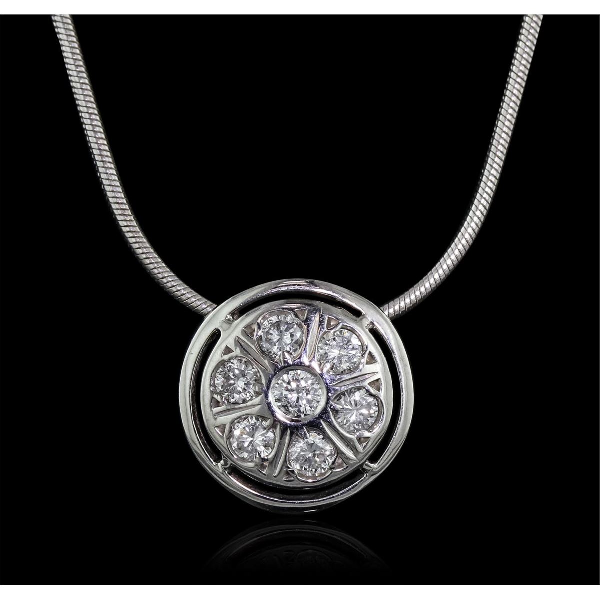 One Pendant With Chain featuring: 14KT White Gold with a total weight of 7.90 grams, and Diamonds with a total weight of 0.35ctw.