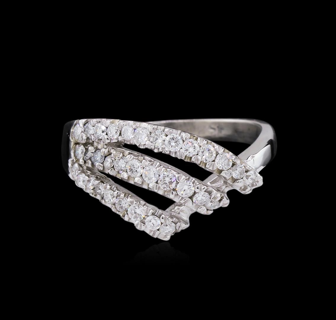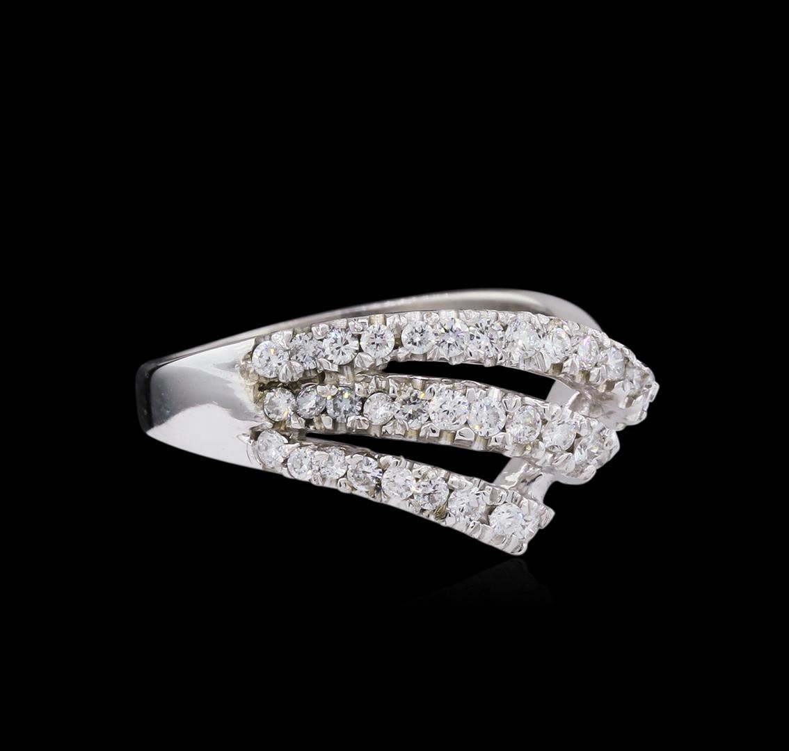 One electronically tested 14KT white gold ladies combination cast & assembled diamond ring with a bright polish finish. Identified with markings of "14K". Condition is new. Containing: Thirty-Five prong set round brilliant cut diamonds, measuring 1.50 - 1.30 x 0.84mm (depth est.) approximate total weight of 35 Stones = 0.35ct. Clarity: SI-2 to I-1. Color: H - I, Cut is Good. All diamonds are graded in the mounting, unless otherwise stated. Total Weight of Diamonds 0.35ct. Total Weight of Ring 4.00 grams. GGL Appraised at $2,200.00.