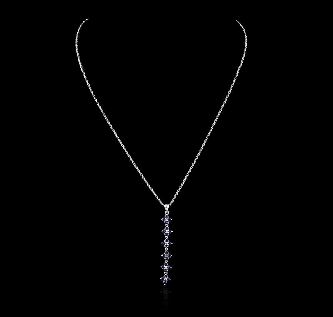 One pendant with chain featuring: 14KT white gold weighing 2.97 grams containing tanzanites with a total weight of 0.35ct and diamonds with a total weight of 0.10ct.
