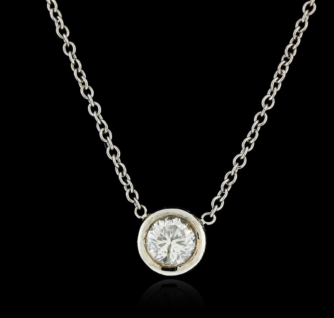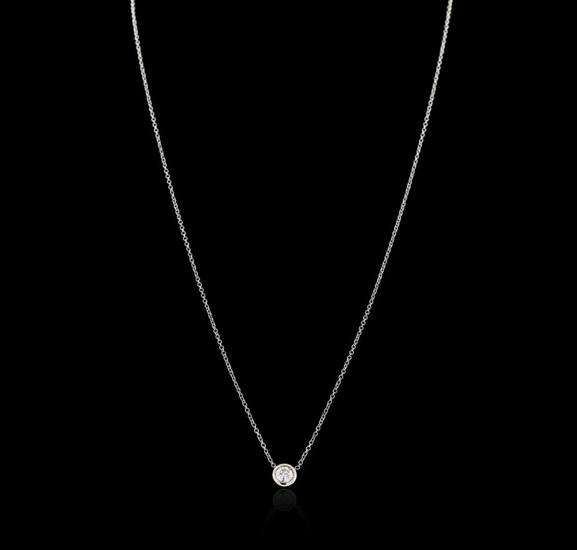 One solitaire necklace featuring: 14KT white gold weighing 2.10 grams containing one bezel set round diamond with a total weight of 0.36ct.